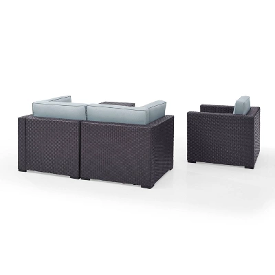 Entertaining outdoors is made effortless with the Biscayne 4pc Conversation Set. Stylish and durable, each piece of this set features all-weather resin wicker woven over durable powder-coated steel frames. Thick moisture-resistant cushions offer deep, comfortable seating, while the all-wicker coffee table adds a convenient spot for a snack or beverage. Ideal for an evening relaxing with friends the Biscayne conversation set is a must-have for your patio or deck.