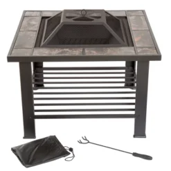 Prolong the life of your gas fire table with this durable cover. This polyester cover with velvet knitted liner is UV and water resistant, and includes a draw-string fastener for the perfect fit. Fits the Real Flame Baltic Square propane and natural gas fire tables. Cover dimensions are 37″L x 37″ W x 16.5