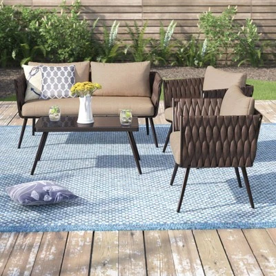 Our 4-person seating group creates an instant gathering spot for your backyard, patio, or garden. We love that this set can be used together or separately to create just the right configuration for your space. It includes two chairs, one loveseat, and one table. All pieces are made of brown wicker rattan & are resistant to corrosion, rust, & fading. The chairs & sofa have removable cushions, which feature polyester filling and water-resistant polyester covers