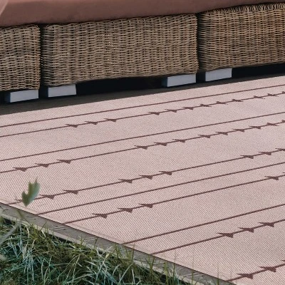 Bring subtle style to your entertaining space with the Pavati Coastal Minimalist Bohemian Arrow Indoor Outdoor Area Rug by Blue Nile Mills. Crafted to weather the elements, this modern rug will add style to your patio, deck, or any indoor living space. This area rug is UV coated to protect against fading and other sun damage allowing for long lasting colors and a very durable and low-maintence indoor/ outdoor rug. For your convenience, this rug can be folded or rolled for easy storage.