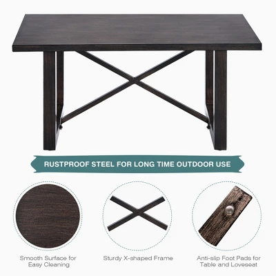 Costway 2PCS Patio Loveseat Coffee Table Set 6” Thick Cushion Garden Beige