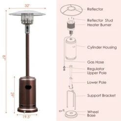 Costway 48000 BTU Propane Patio Heater Standing LP Gas Steel W/ Wheels Bronze