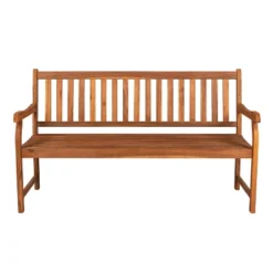 Costway Set Of 2 Patio Acacia Wood Dining Bench With Rustic Steel Legs Outdoor Indoor