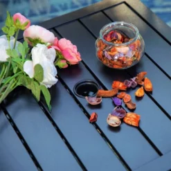 3pc Contemporary Modern Mesh Lattice Aluminum Patio Bistro Set – Black- Oakland Living