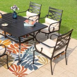 5pc Patio Set With Square Table & Steel 360 Swivel Sling Arm Chairs – Captiva Designs