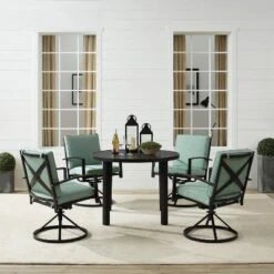 5pc Kaplan Outdoor Steel Round Dining Set With Swivel Chairs Mist/Bronze – Crosley