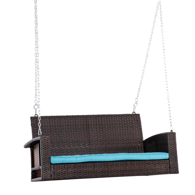 - HANDWOVEN WICKER STYLE: A wonderful accent piece, our swinging PE rattan wicker bench was handwoven, adding real wicker flair to your outdoor decor. PE rattan provides superior resistance to water and weather compared to classical wicker, and with a reinforcing galvanized steel frame, this swinging porch bench was made with outdoor in mind.